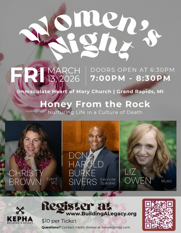 oin us for an evening of insight, inspiration, and prayer featuring Deacon Harold Burke-Sivers, with music by Liz Owen. Emceed by Christy Brown and hosted by Immaculate Heart of Mary Catholic Church in Grand Rapids.